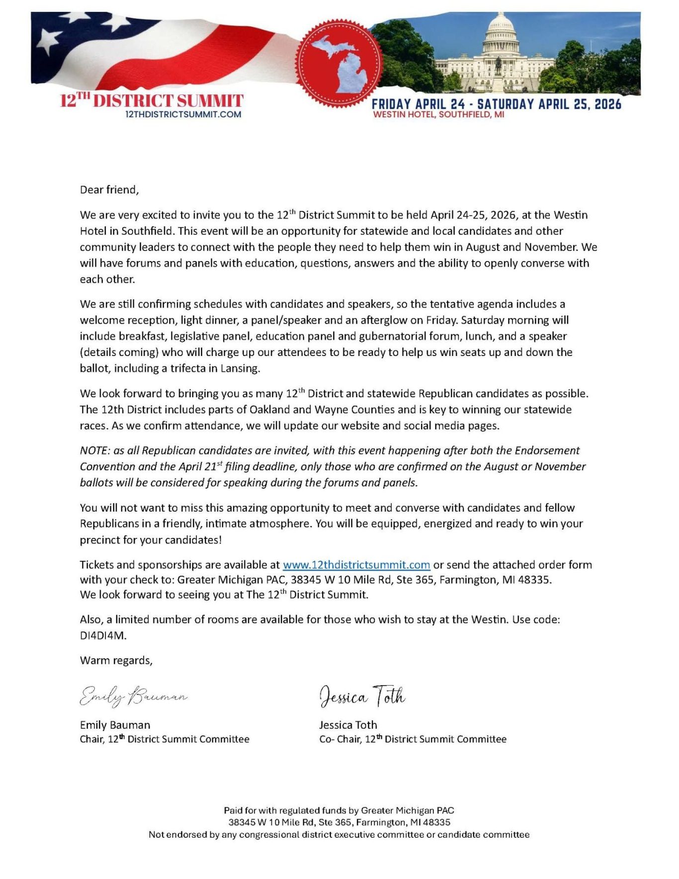 Paid for with regulated funds by Greater Michigan PAC. 38345 W 10 Mile Rd, Ste 365, Farmington, MI 48335